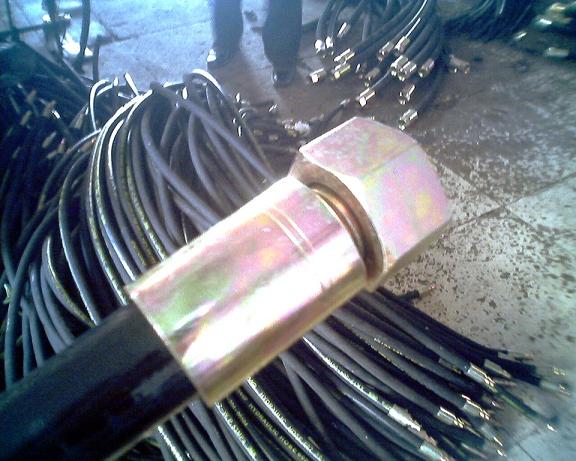 一種吹氧膠管,屬于純氧頂吹煉鋼轉爐氧槍與氧源之間連接的一種高壓輸送氧氣的柔性工具.它由法蘭接頭、內膠層、增強層、端部加固層、端部膠片、端部補強層、骨架層、中膠層、外膠層所組成.工作壓力15至20kg/cm2,真空度600毫米汞柱,耐轉爐輻射溫度250度以上.與普通輸吸水膠管比,還具有耐熱、耐疲勞、耐燃、耐老化,使用壽命長,操作安全,更換方便等優點.適用于120噸至150噸轉爐高壓吹氧輸水.